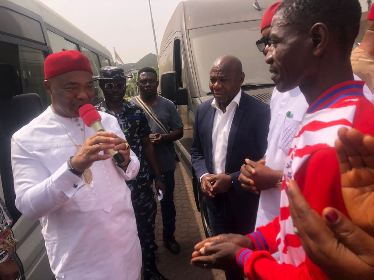 The keys to the buses were officially handed over by the governor to Coach Emmanuel Amuneke, MFR, the Technical Manager of Heartland FC, and Mr. Obi Ogbala, the Technical Adviser of Heartland Queens FC, in the presence of other team officials.