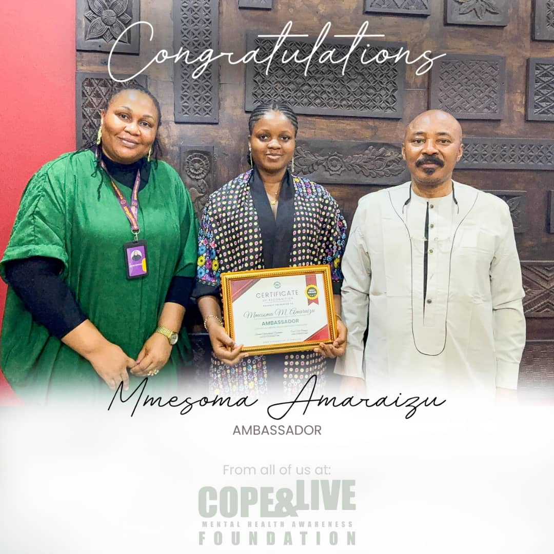 In her acceptance speech, Mmesoma expressed gratitude to God for His grace and thanked her parents for their unwavering support and guidance. She credited her success to discipline, determination, and dedication, while also acknowledging the contributions of her siblings and friends. “I am deeply honored to serve as an ambassador for Cope and Live Mental Health Awareness Foundation. I hope to inspire others to achieve their goals while prioritizing their mental well-being,” she said.