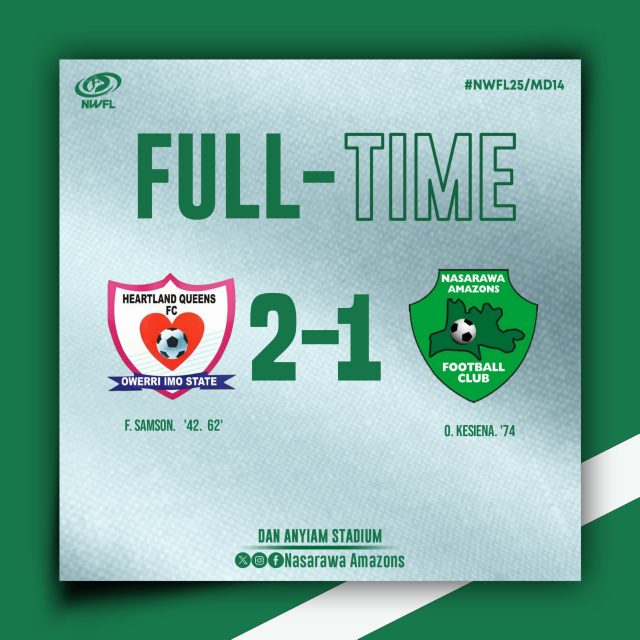 Heartland Queens yesterday at the Dan Anyiam stadium Owerri defeated visiting Nasarawa Amazons by 2-1 in match day 14 of the NWFL.