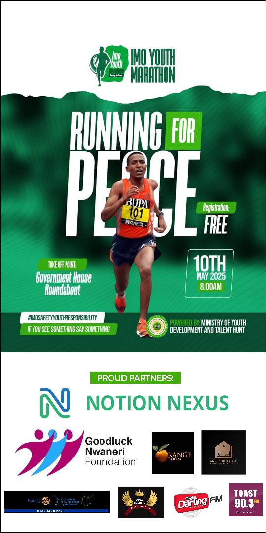 Tagged RUNNING FOR PEACE.. will be thrilling, exciting and the first of it’s kind in Owerri on the 10/5/25.