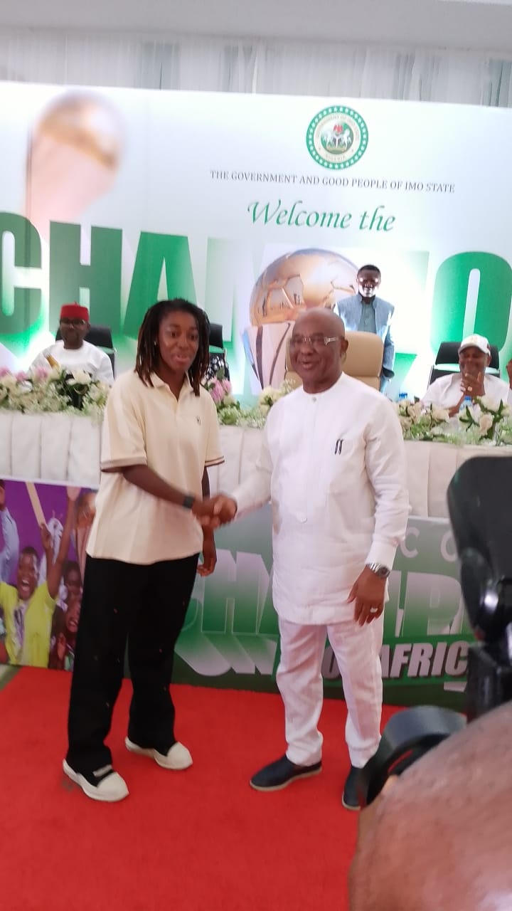 During the reception ceremony held at the Government House in Owerri, the Imo State Commissioner for Sports, Hon. Obinna Onyeocha, described the players as the “Golden Girls of Imo State.” He formally introduced the athletes to Governor Uzodimma in the presence of dignitaries including the Deputy Governor, traditional rulers, top government appointees, and sports stakeholders.