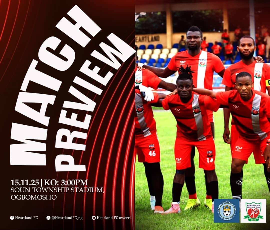 Crown FC will host Heartland FC at the Soun Township Stadium, Ogbomosho, on Saturday afternoon in what promises to be a thrilling Matchday One encounter as both sides begin their campaign in the Nigeria National League (NNL).